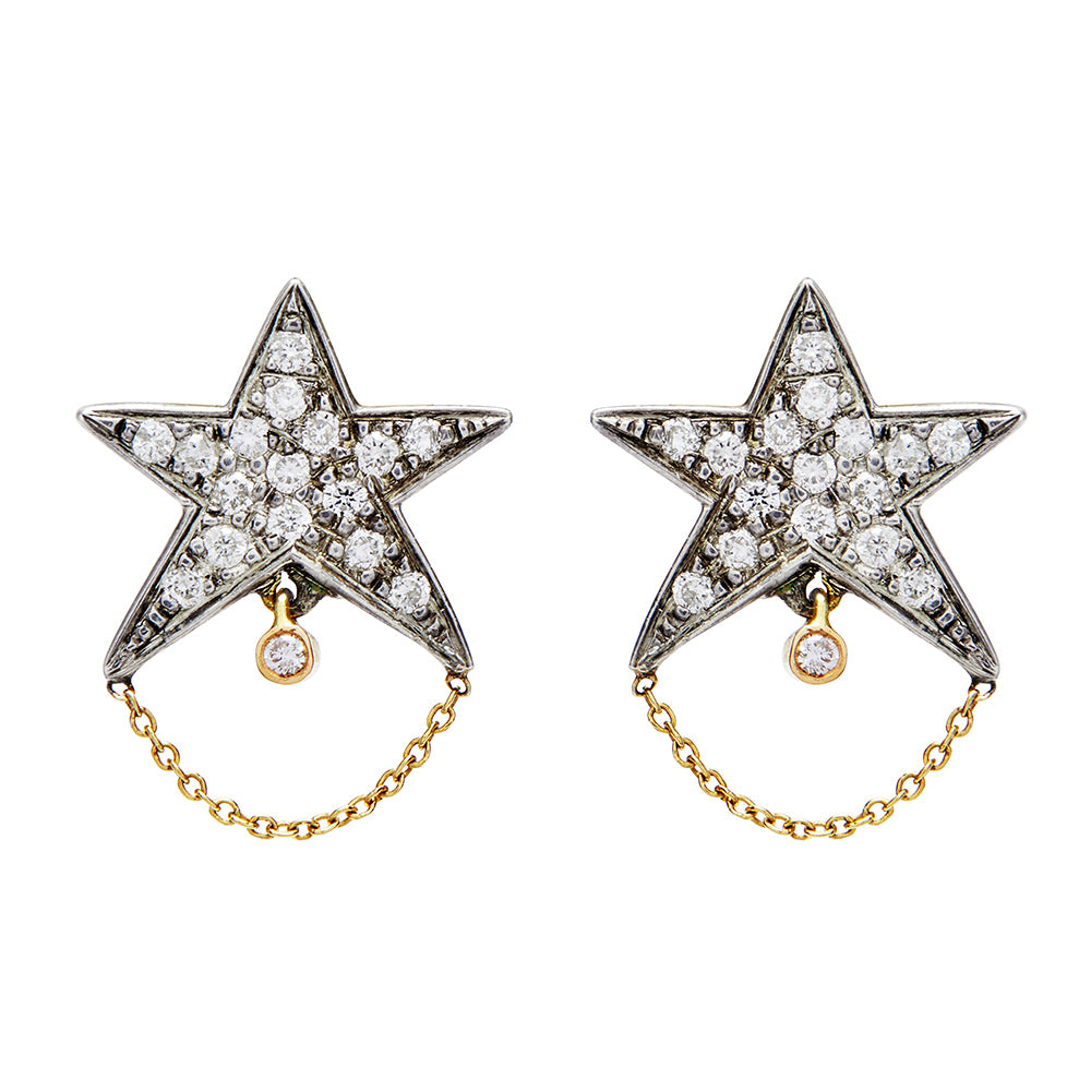 • Tiny Dancer Black Diamond Stud Earrings by Unhada - Twinkling with 0.36 cts of black diamonds, these bestselling 18k yellow gold star earrings are a playful dose of sparkle. Perfectly proportioned and securely fastened with 18k post backs, they’re a shining favorite for every occasion—day or night.