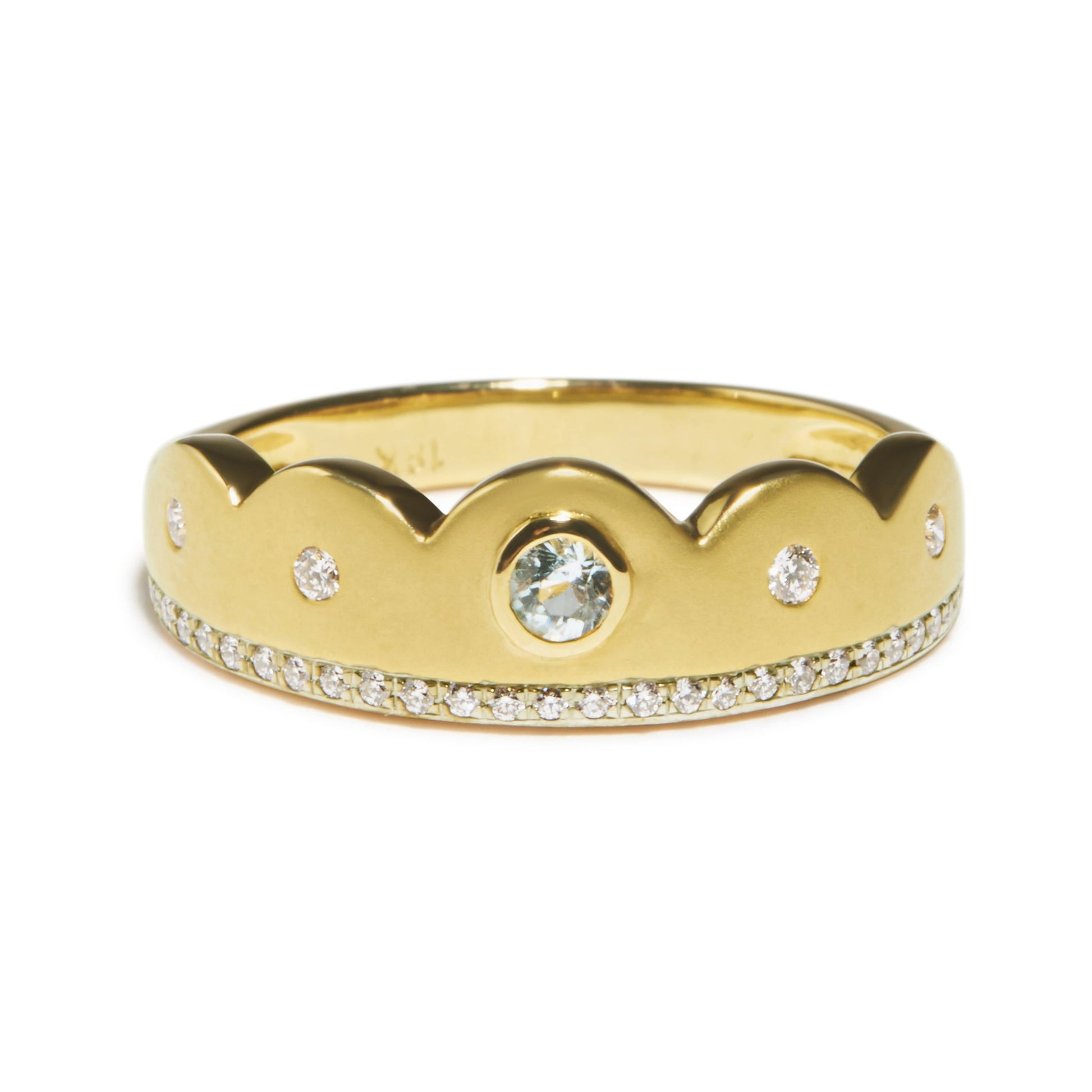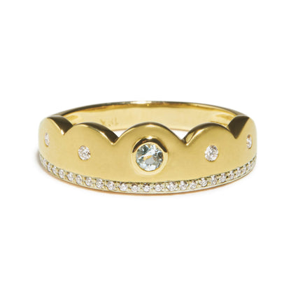 Chantal Ring - 18K Gold Aquamarine & Diamond Scalloped Ring