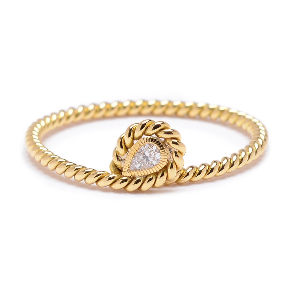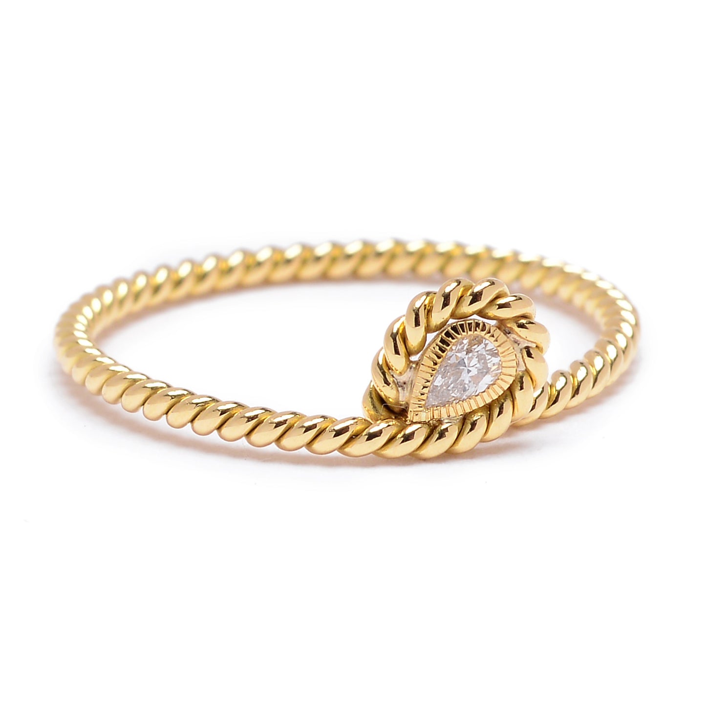 Diamond Purity Ring - 18K Gold Twisted Cable Band with Pear Diamond