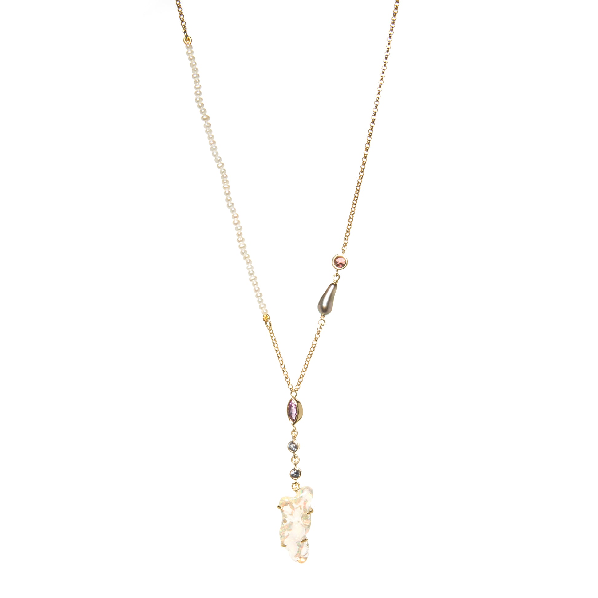 Free form mexican crystal opal, Morogoro spinel, color-change garnet, keshi pearls, akoya pearls, fancy sapphires; 18k. Adjustable lobster clasp. 17" 18" One of a kind.