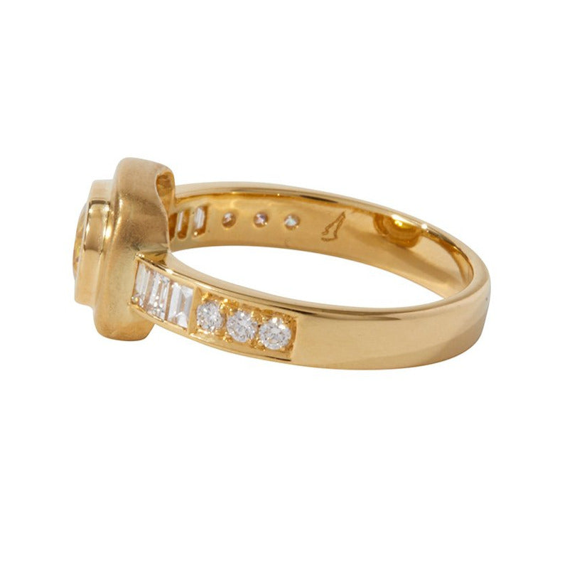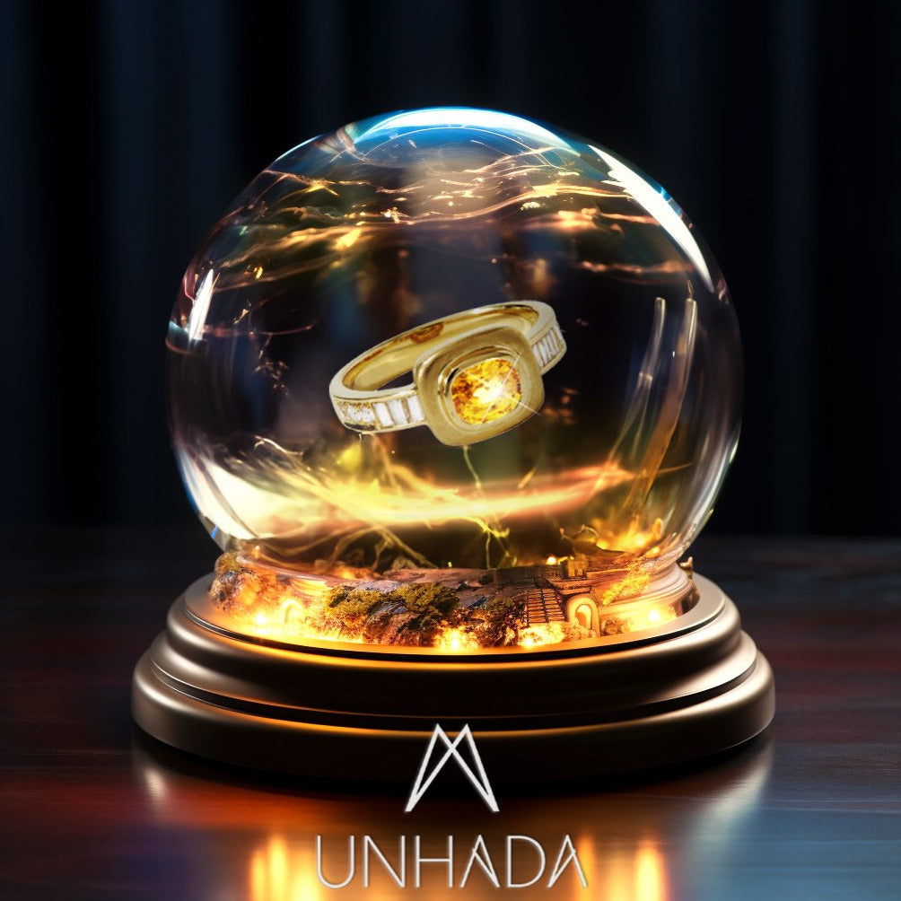 The Imperial Ring commands attention as a one-of-a-kind design worthy of an empress, blending elegance with mystical allure. This yellow sapphire statement ring showcases a vibrant yellow sapphire (.97 cts) at its heart, framed by baguette and brilliant round diamonds (.62 cts) in a bold 18k gold setting that delivers exceptional luxury.