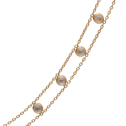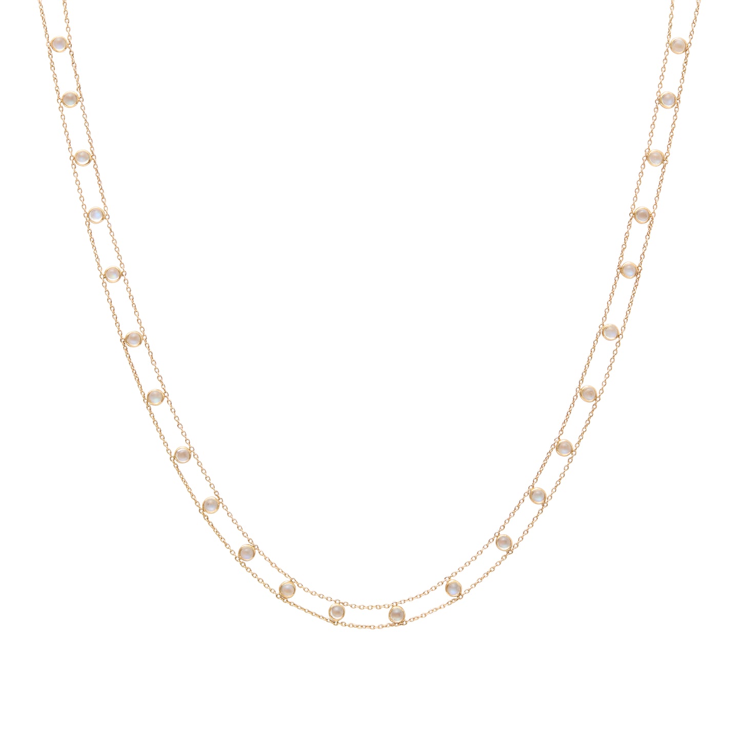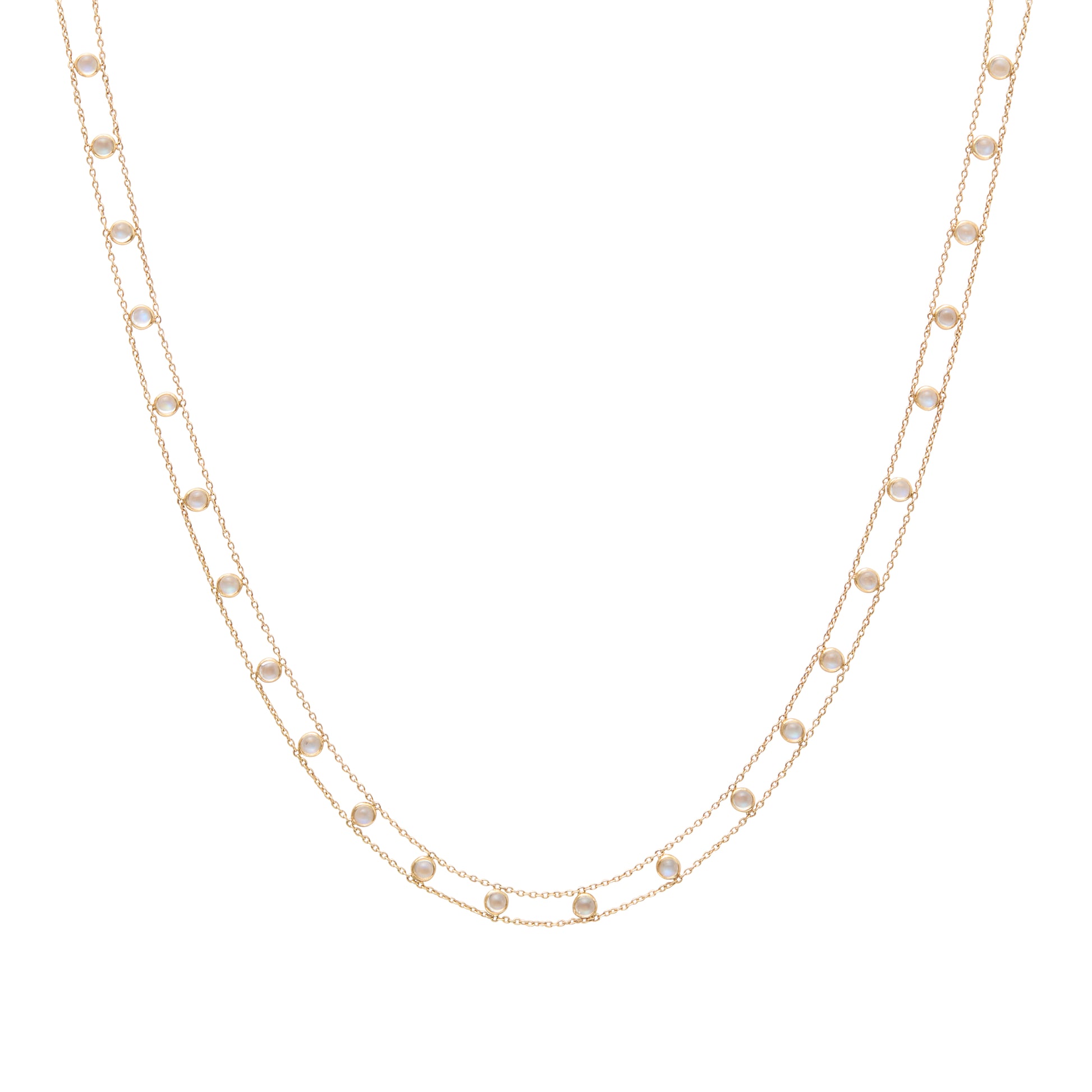 Sometimes the most beautiful journeys are marked by simple waypoints. This 18k gold moonstone chain from the Rails Collection captures that philosophy, each luminous stone serving as a gentle marker along life's path.