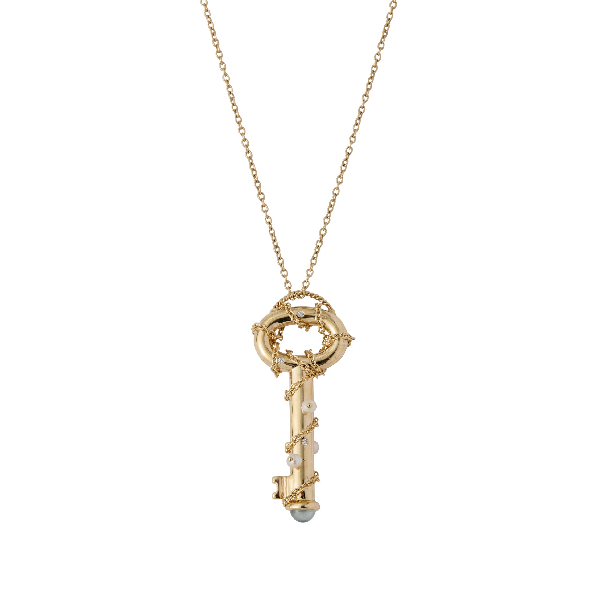 Nirvana Pendant Necklace - 9K Gold Diamond & Aquamarine Pearl Necklace