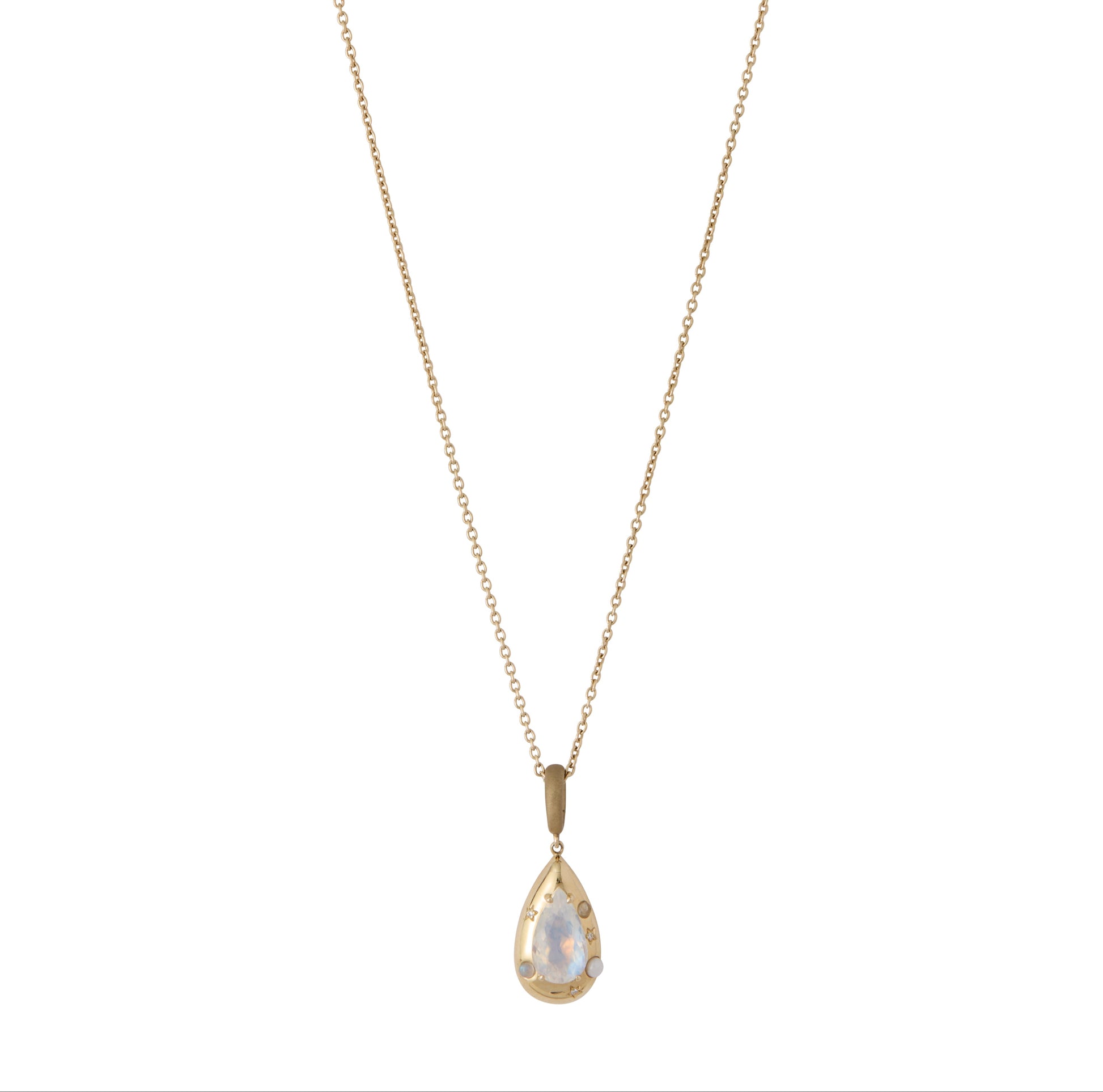 Oracle Pendant Necklace - 9K Gold Blue Moonstone & Diamond Pearl Necklace