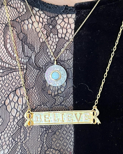 Pink Sapphire Mirror Necklace - 18K Gold & Silver Opal Statement Necklace
