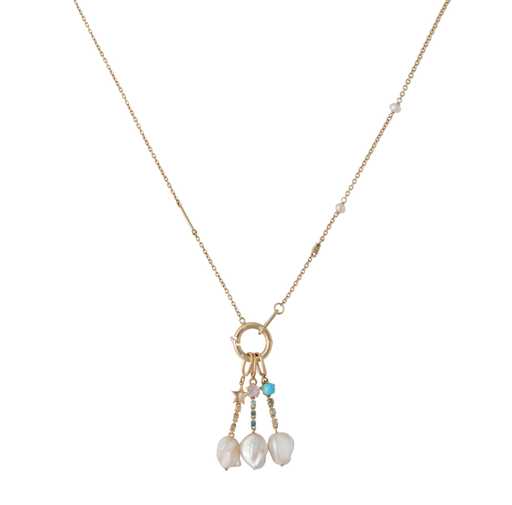 Reverie Charm Chain - 9K Gold Diamond & White Sapphire Pearl Necklace