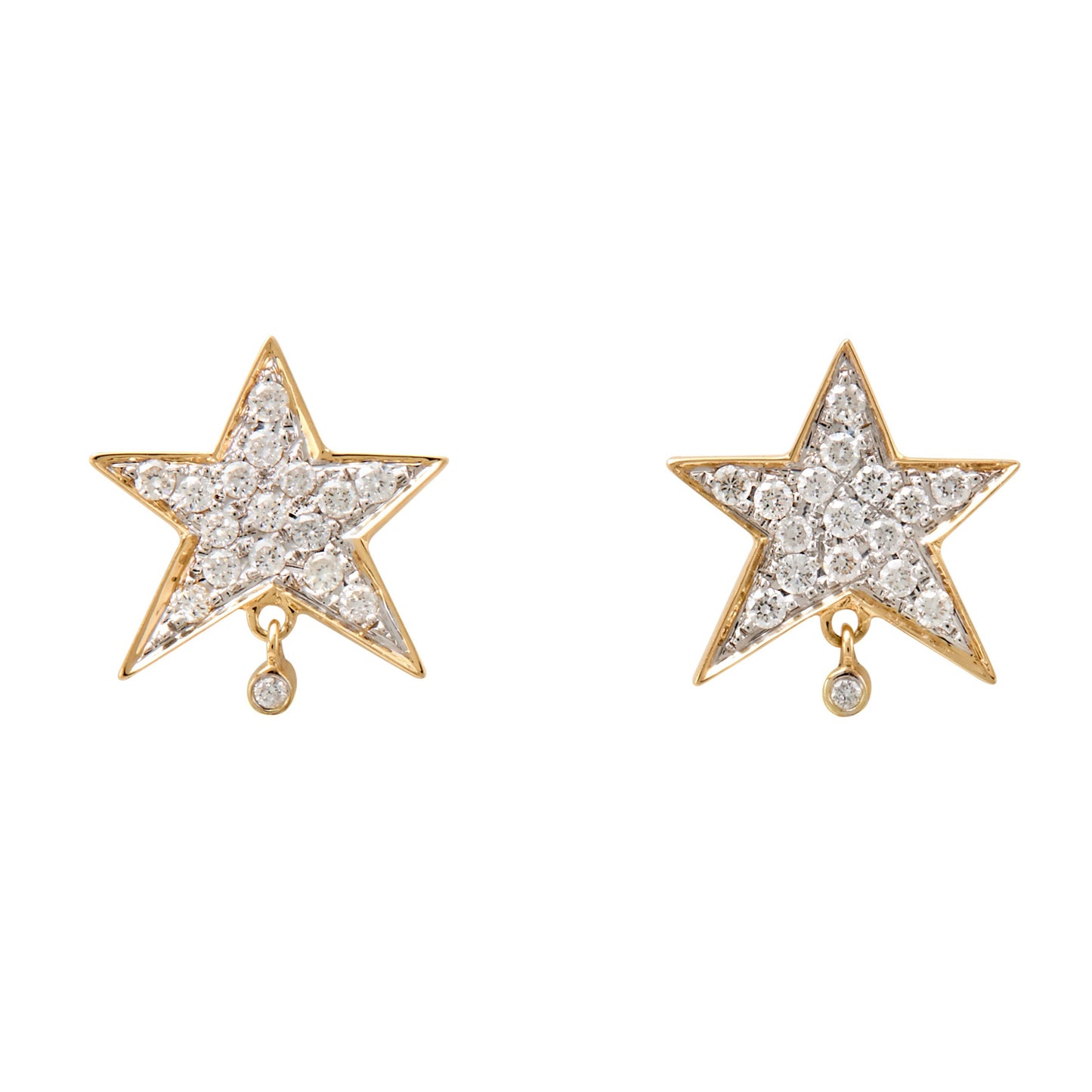 Discover the bestselling White Diamond Tiny Dancer Stud Earrings, sparkling 18k yellow gold diamond star studs that deliver a playful dose of brilliance. These white diamond star earrings feature 0.36 cts of twinkling white diamonds in perfectly proportioned settings, secured with 18k post backs for confident all-day wear.