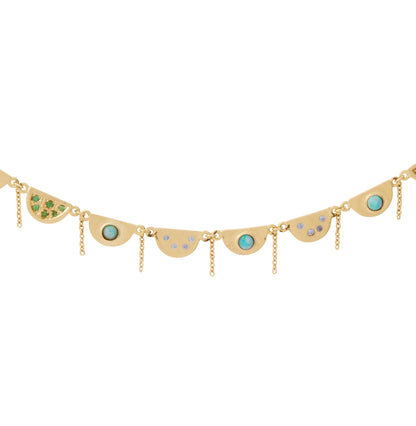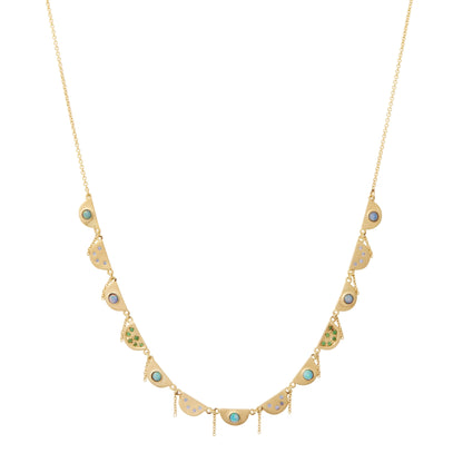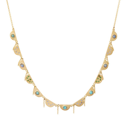 Chantal Necklace - 18K Gold Scalloped Multi-Gemstone Necklace